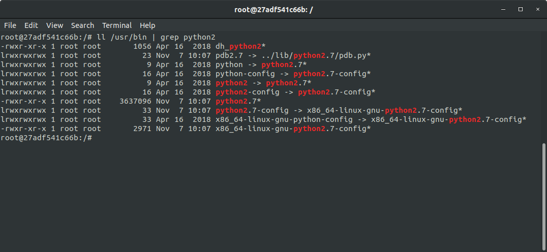 root@b069bb76b513:/# ll /usr/bin | grep 'python2'