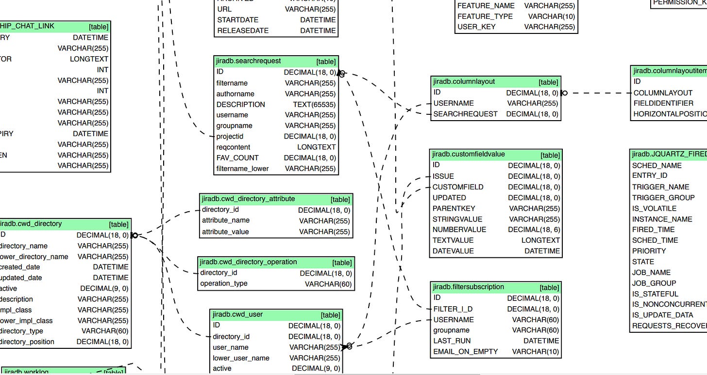 source: Jira, a software company, has uploaded their database schemas and can be viewed here. For fun.